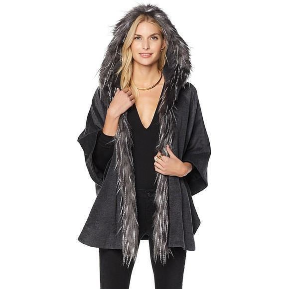 Who doesnt want a hood when the cold wind blows? Winters chill can be staggering but with Adrienne Landau you get pieces that are seasonally appropriate and stylish. This cozy cape with trim gives you a versatile piece to wear all season. Indoors and outside.