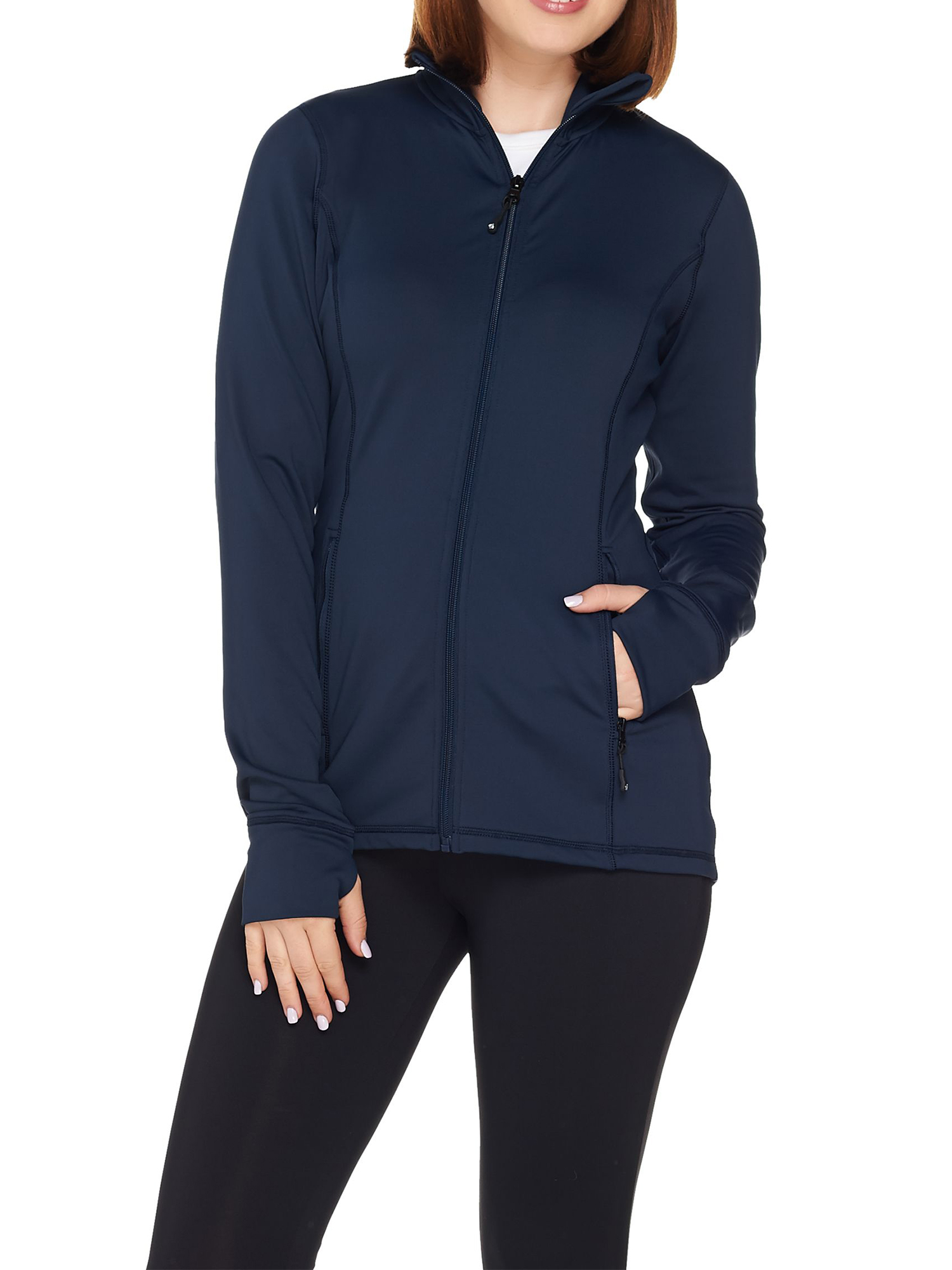 Stay warm during cold-weather workouts in this cee bee CHERYL BURKE jacket. With a mock neck, a slight hi-low hem, thumb holes, and princess seams, it’s sure to keep you fashionable as you exercise. From cee bee CHERYL BURKE.