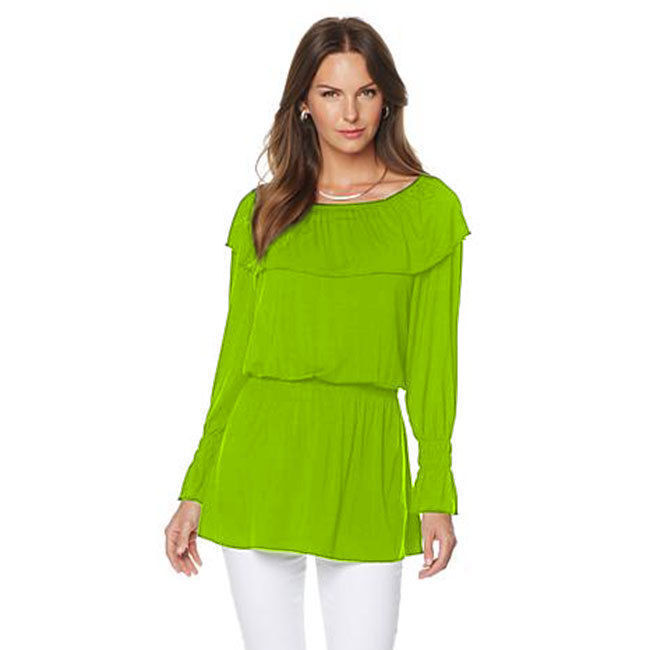 DIANE GILMAN Size S Off the Shoulder Peasant Top Blouse LIME
