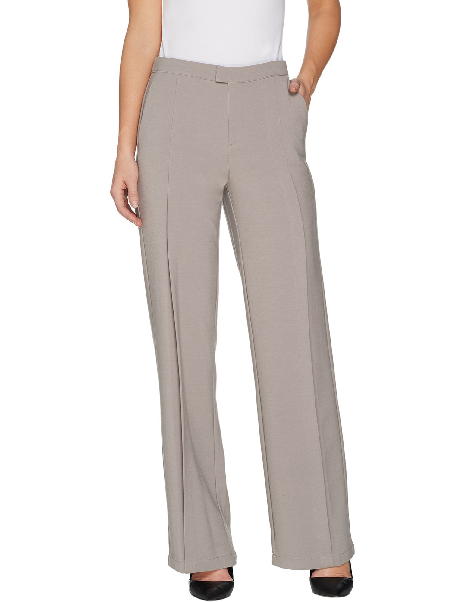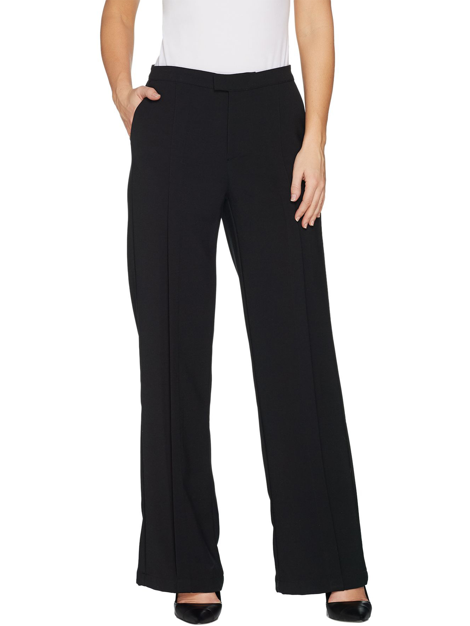 Be ready for anything when you wear these stretch suiting wide leg pants. A stitched pleat down the front gives them a crisp, clean look. From H by Halston.
