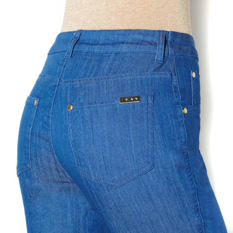 Who better to take styling advice from than a fashion icon? IMAN brings you a fabulous, fitted pant thats flattering for all body types and heights. This comfortable stretch-denim essential features designer details like a no-gap waist and angled pockets to help accentuate your best assets. Add the matching tee and youre ready to go!
