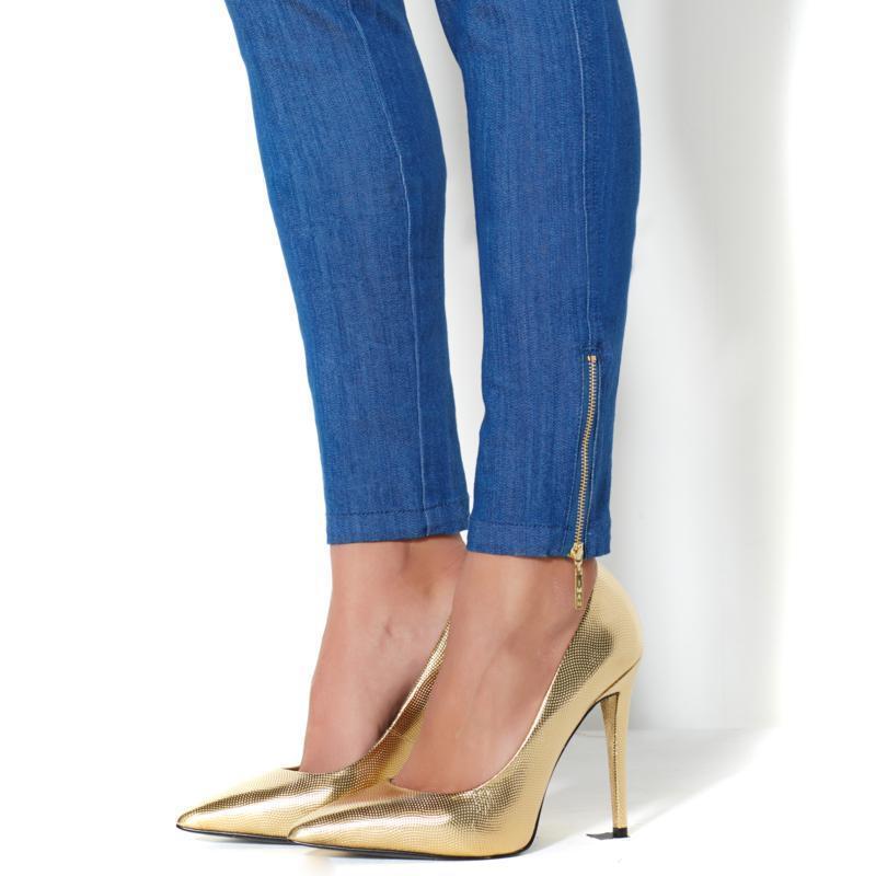 - Design Features: Back yoke; IMAN signature goldtone logo plate on back pocket