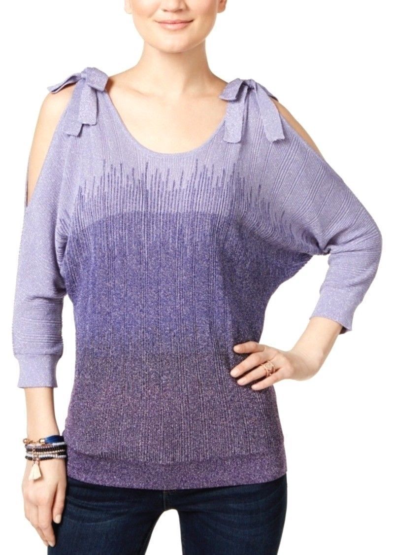 INC INTERNATIONAL CONCEPTS Size XL Cold Shoulder Bow Sweater PURPLE