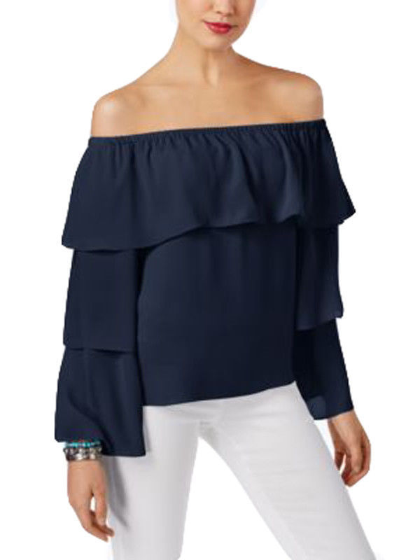 Ruffles add a little romance to this striking off-the-shoulder top from INC International Concepts.