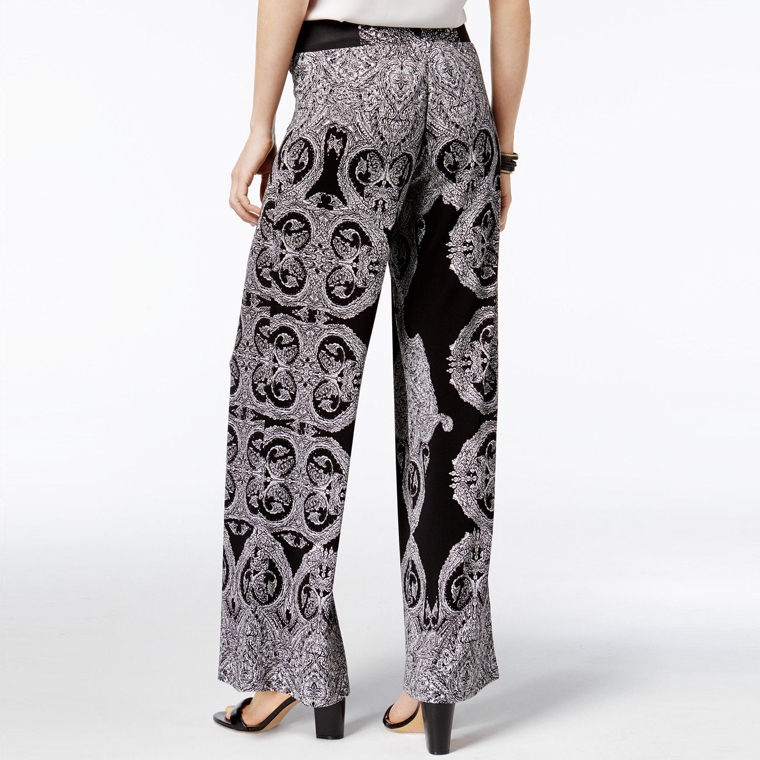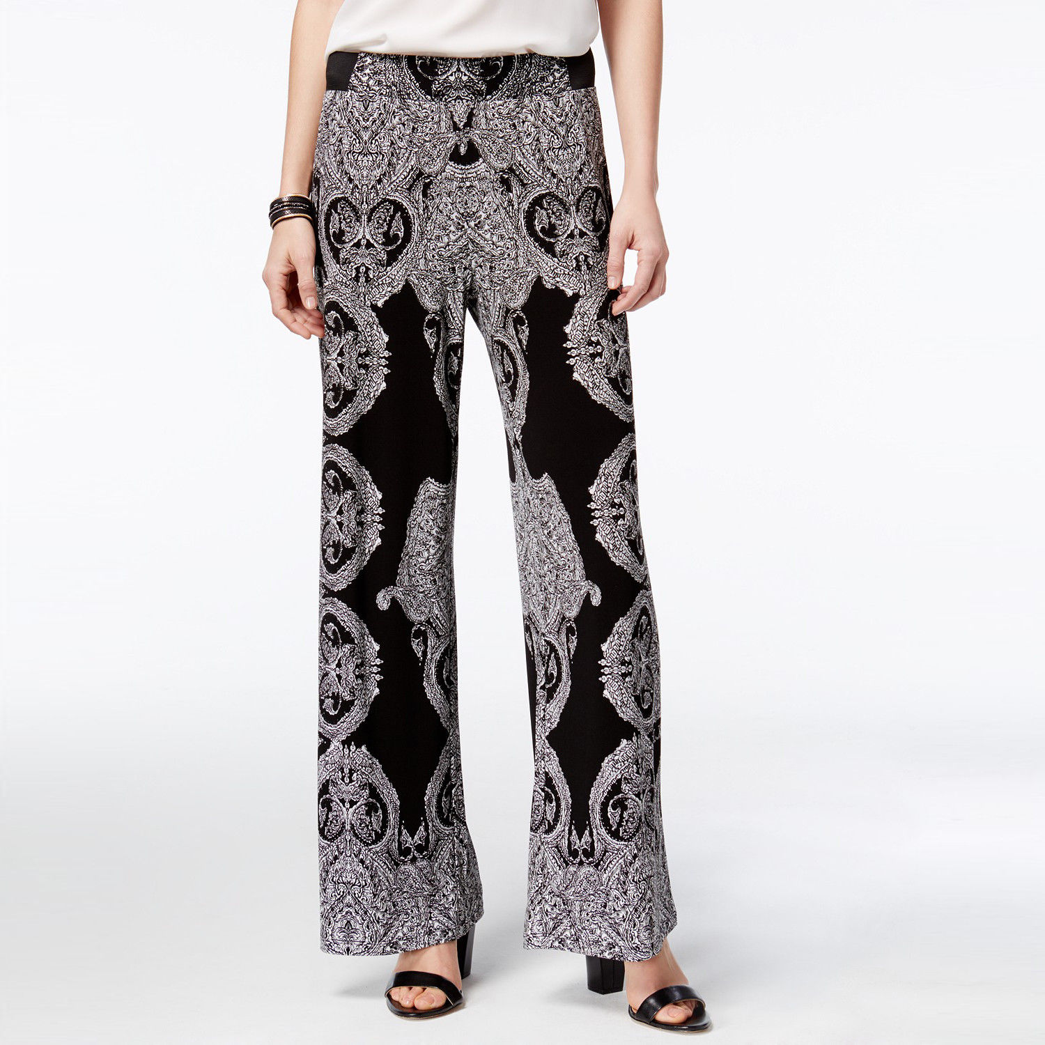 A contrast print decorates these easygoing soft pants from INC International Concepts, cut in a classic wide-leg silhouette for timeless style.