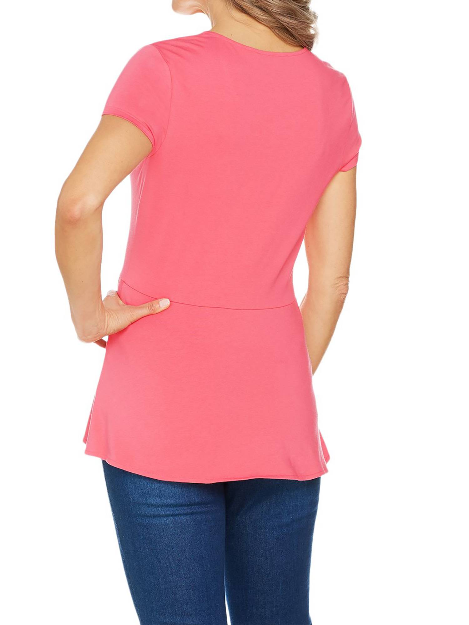 - Features: short sleeves, scoop neckline, peplum flounce detail on front, waist seam