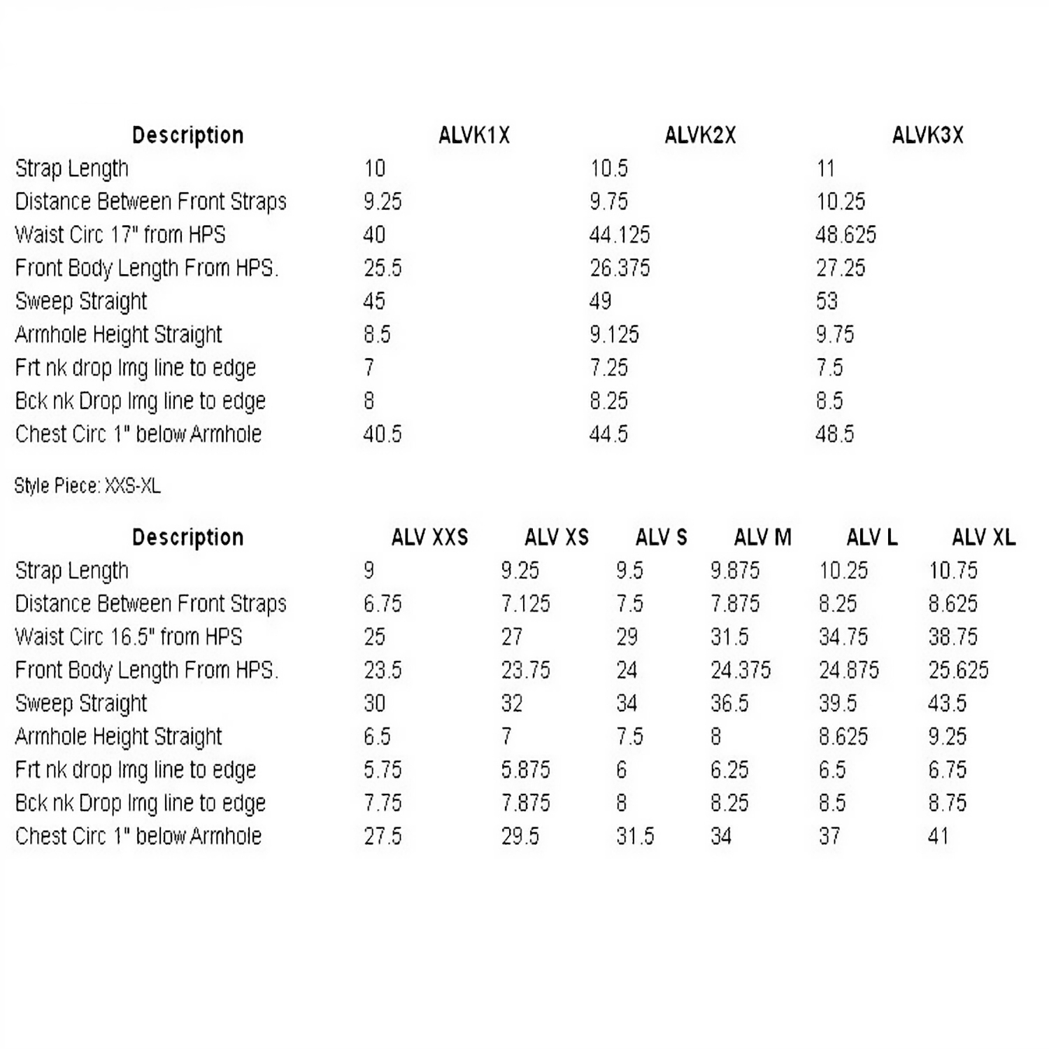 - XS(2-4), S(6-8), M(10-12), L(14-16), XL(18-20), 1X