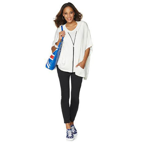 Spring and summer, fall and winter whatever the climate calls for, you can trust this versatile poncho for its style longevity. Its a staple to have on hand all year because you can layer it with leggings for ease and denim jeans for flair. The kangaroo pockets make for a convenient place to warm your hands or stash the small essentials. Twiggy knows a thing or two about the chic life, and now you do, too.