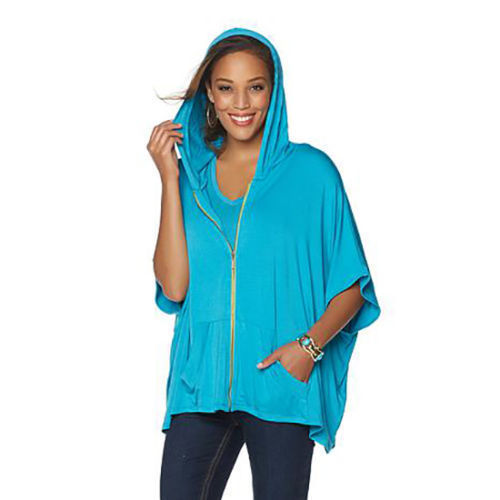 TWIGGY Size 2X Iconic Hooded Poncho Blouse Top CLASSIC BLUE