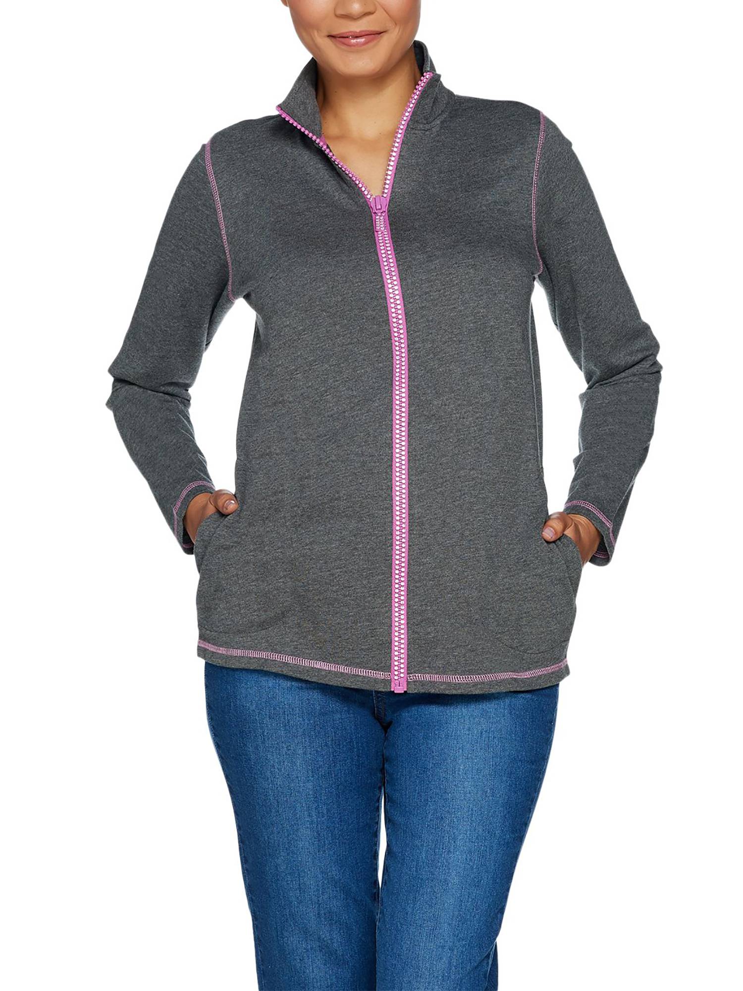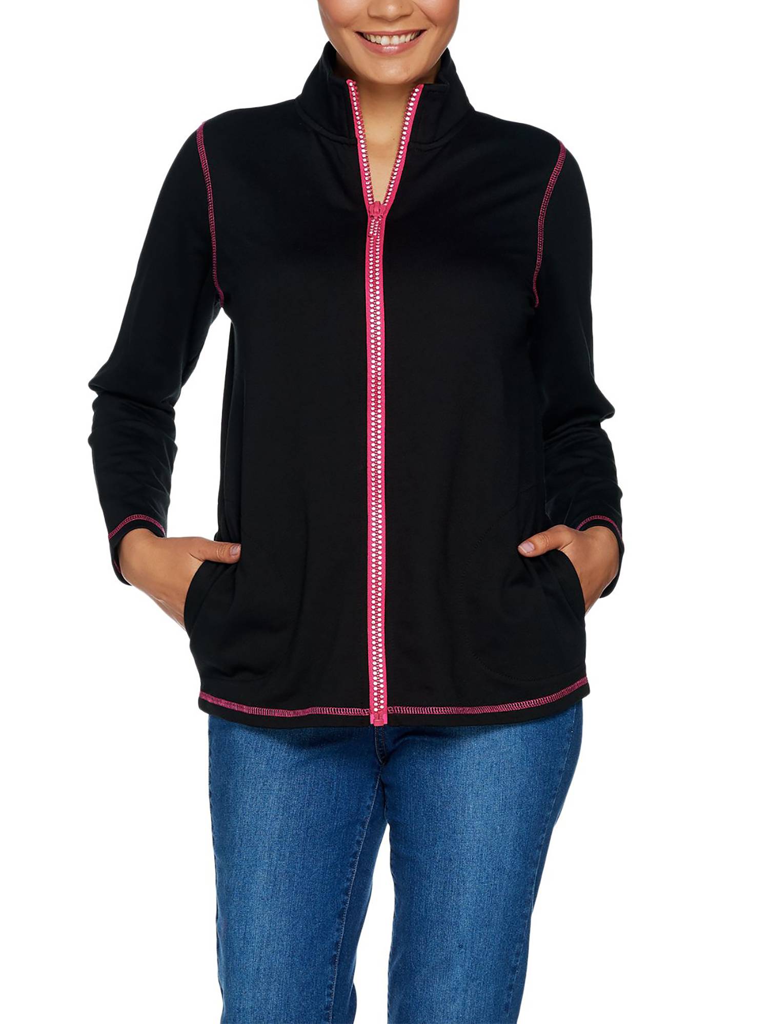 Made for your busiest days, this comfy French terry jacket offers a zip front and contrast seam details. From Quaker Factory(R).