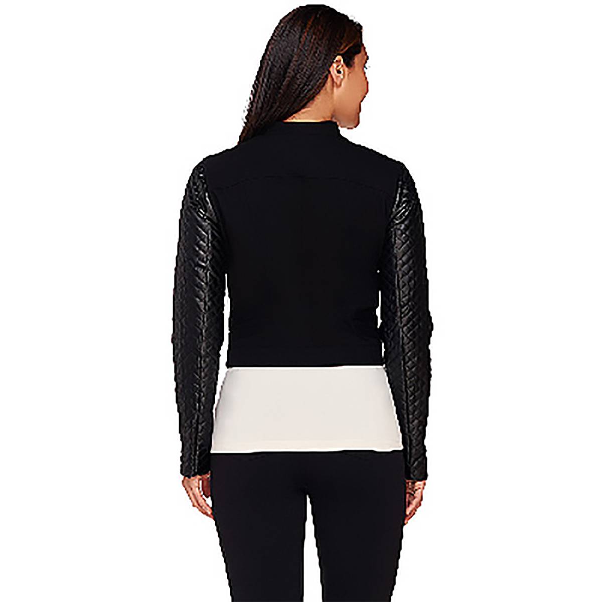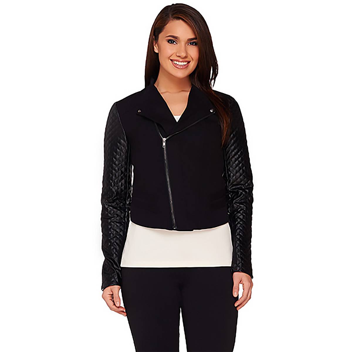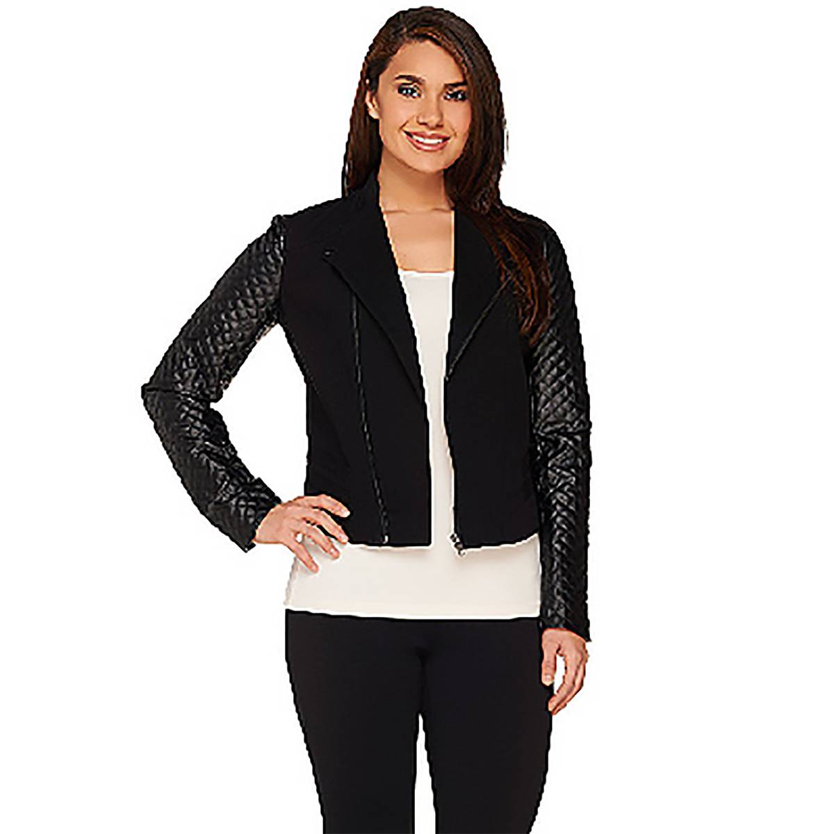 Edgy enough to give you that rebellious feel but stylish enough to fit seamlessly into your sophisticated wardrobe, this jacket is super-chic. Quilted, faux leather sleeves and an asymmetrical front zipper are the design highlights. From View by Walter Baker.