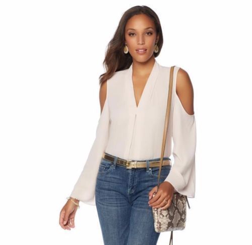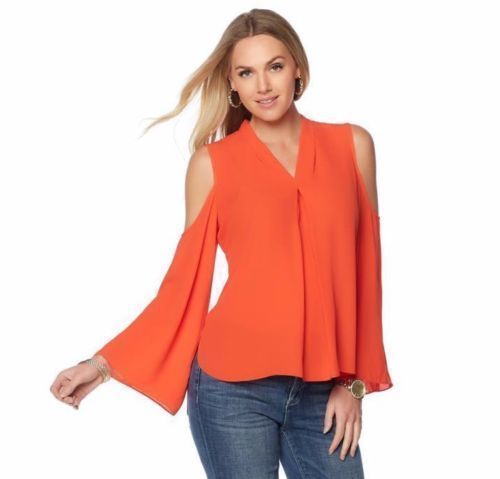 VINCE CAMUTO Size S Bell Sleeve Cold Shoulder Top Blouse RED HOT